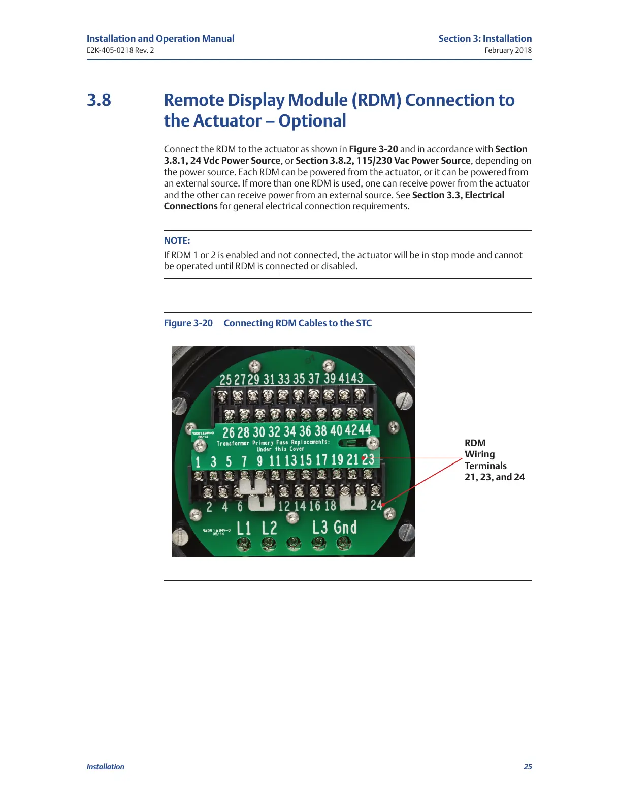 Connect the RDM to the actuator as shown in Figure 3-20 and in accordance with Section