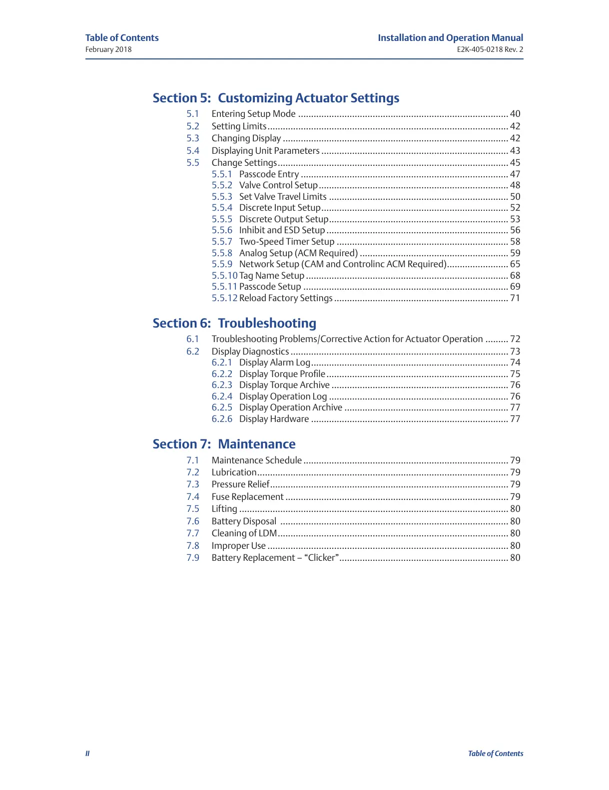 6.1 Troubleshooting Problems/Corrective Action for Actuator Operation ......... 72