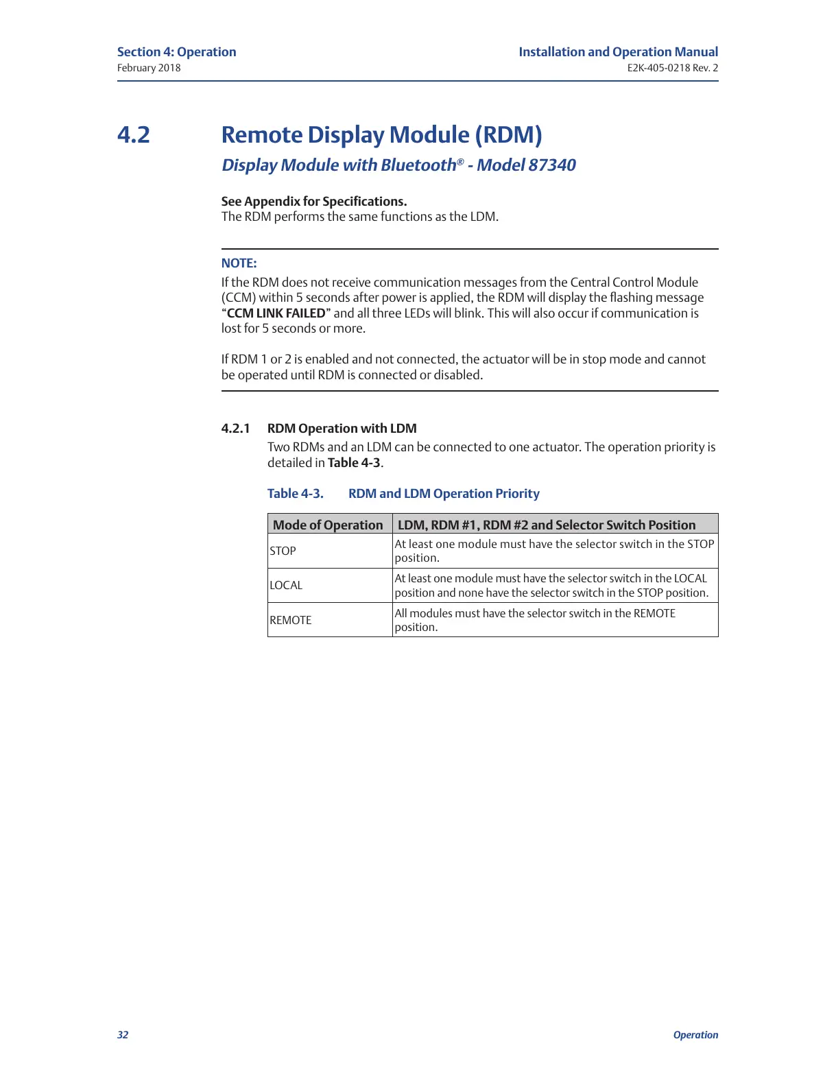 If RDM 1 or 2 is enabled and not connected, the actuator will be in stop mode and cannot