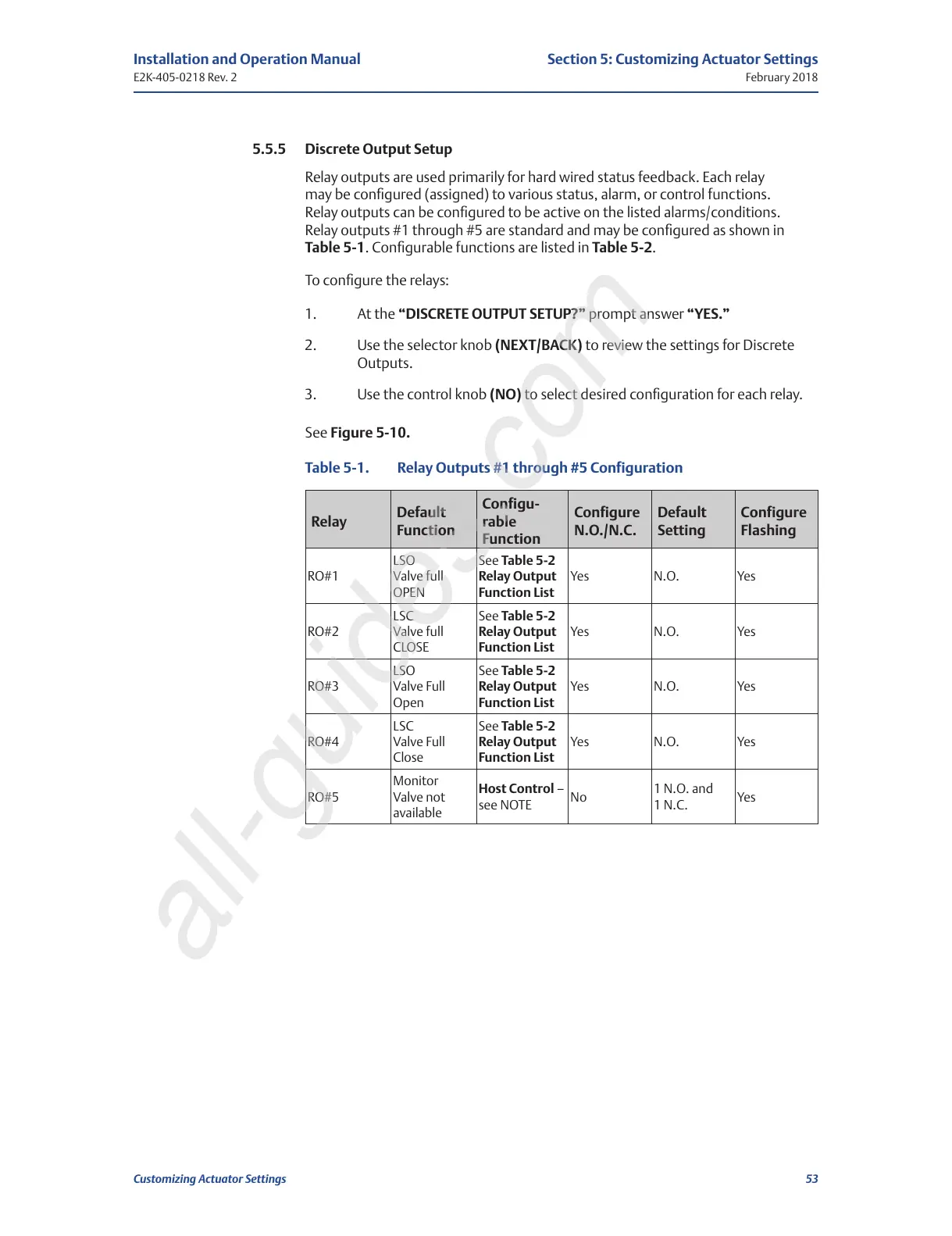Table 5-1. Relay Outputs #1 through #5 Configuration