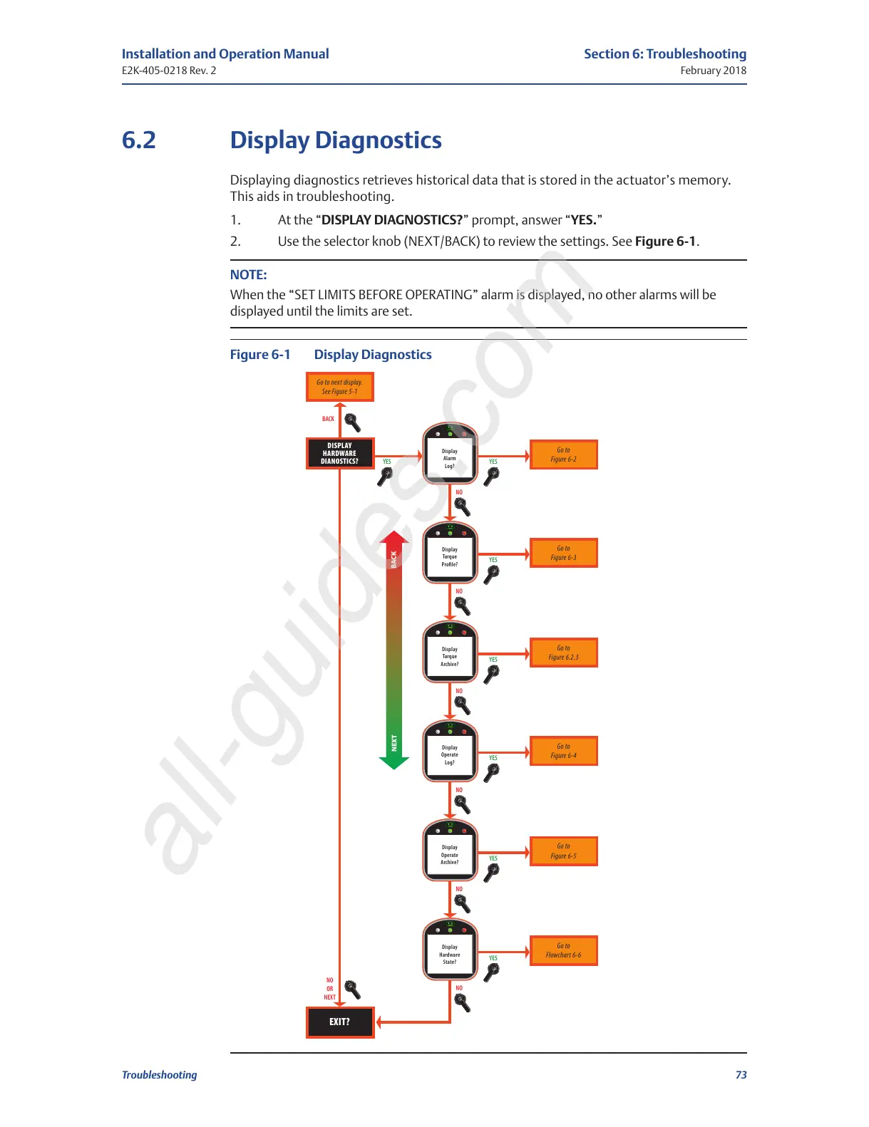 Displaying diagnostics retrieves historical data that is stored in the actuator’s memory.