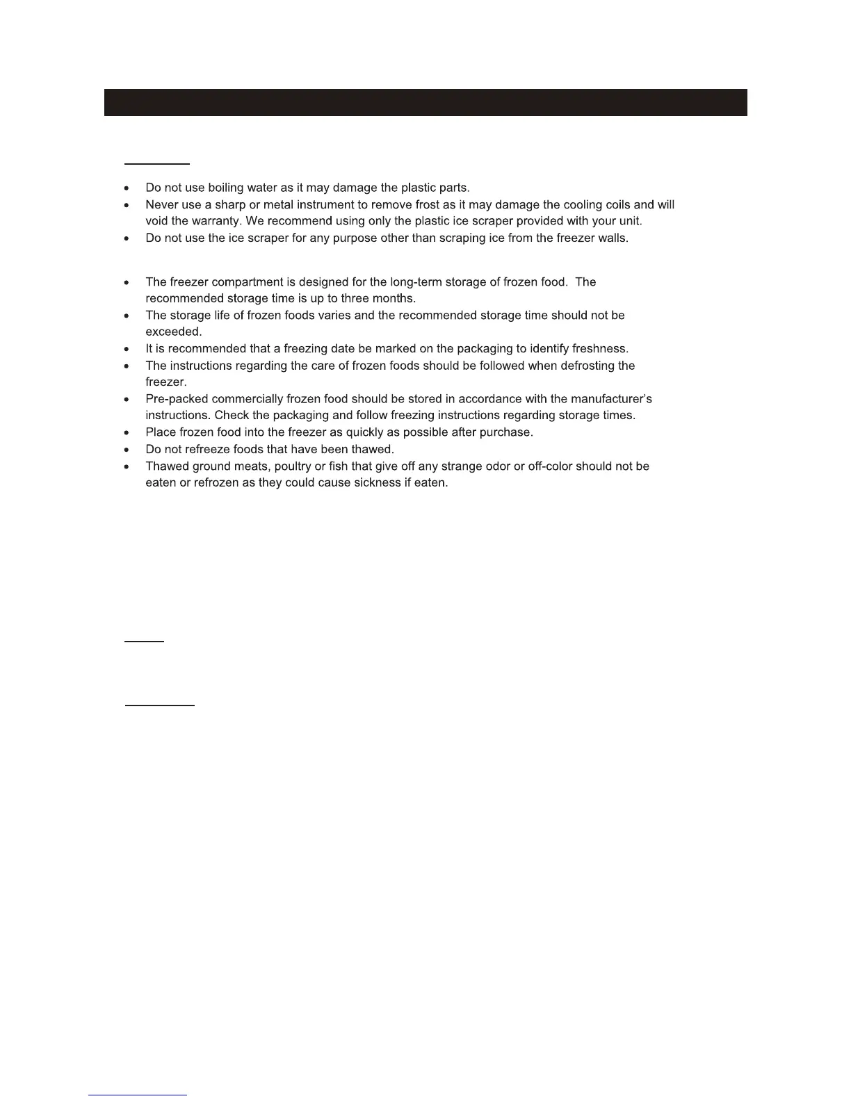 • Avoid putting large quantities of fresh or hot food into the freezer at the same time as the freezing