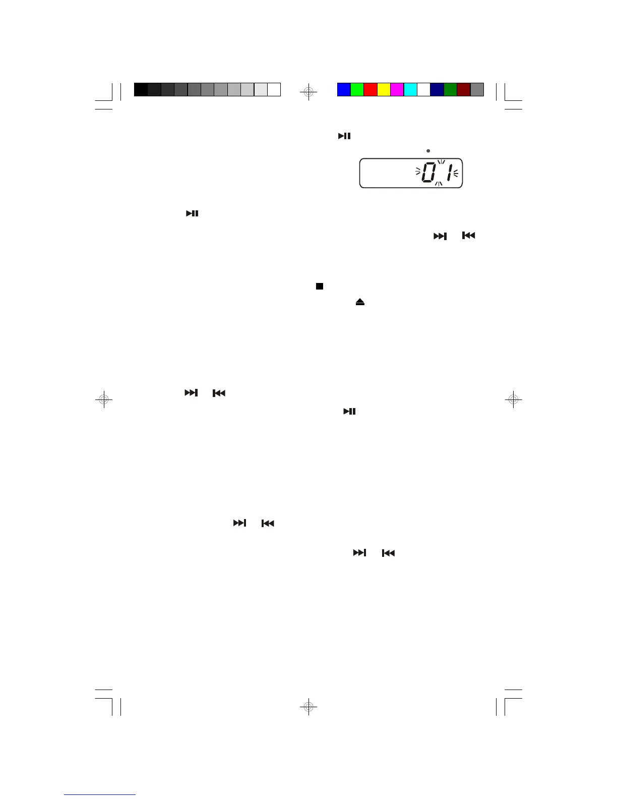 buttons until the desired track number appears in the display. Playback will