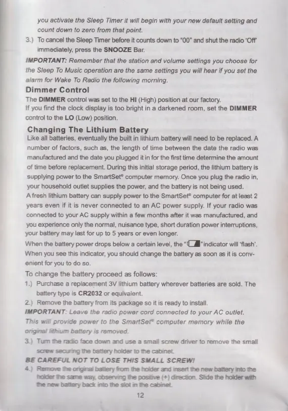 Emerson CKS9051 - Display and Battery Maintenance; Dimmer Control Adjustment; Replacing the Lithium Battery