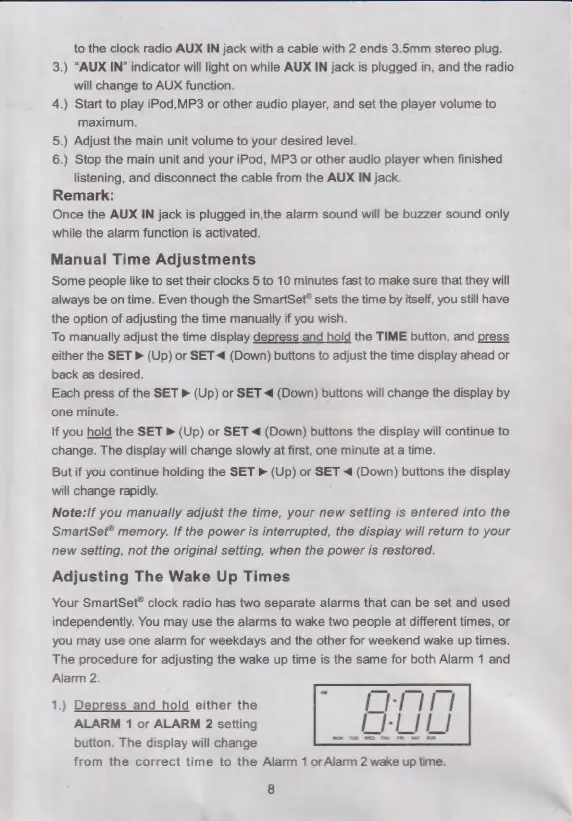 Emerson CKS9051 - Alarm and Time Adjustment; Manual Time Setting; Setting Wake Up Times