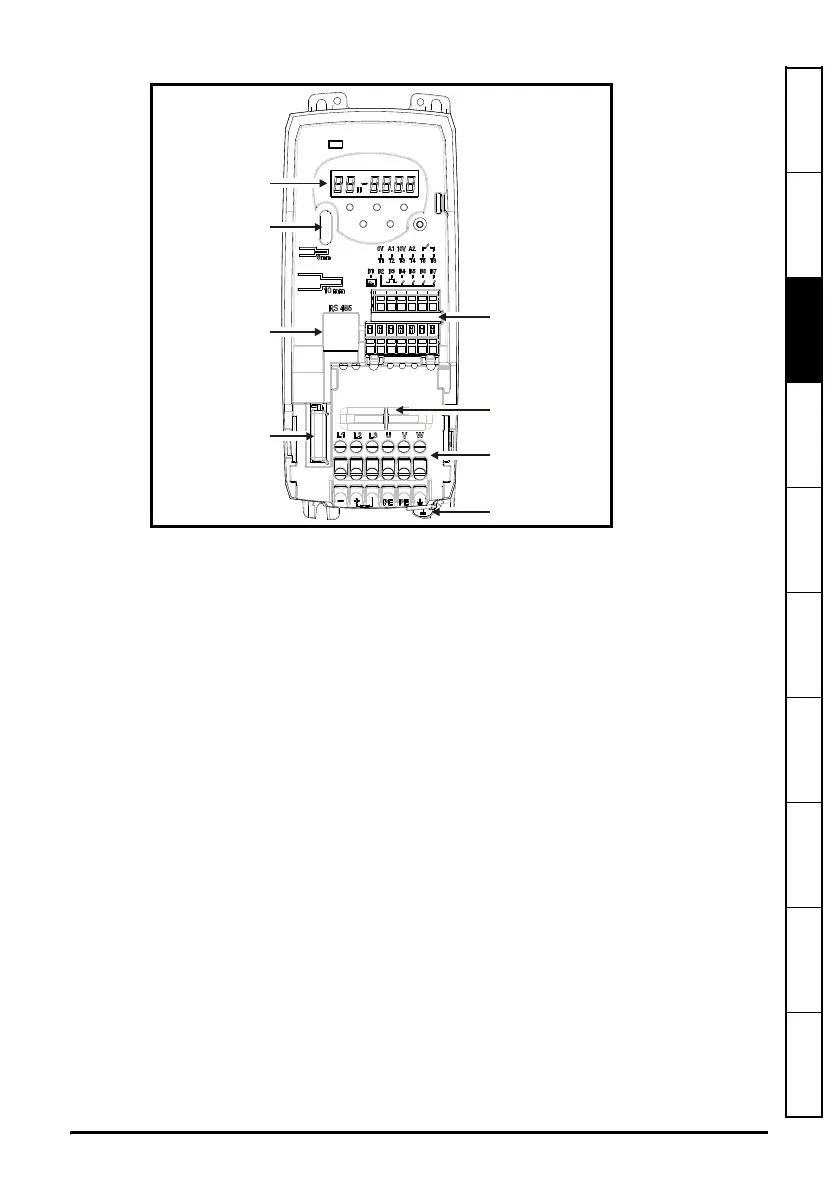 Figure 3-5 Features of the drive (size B illustrated)