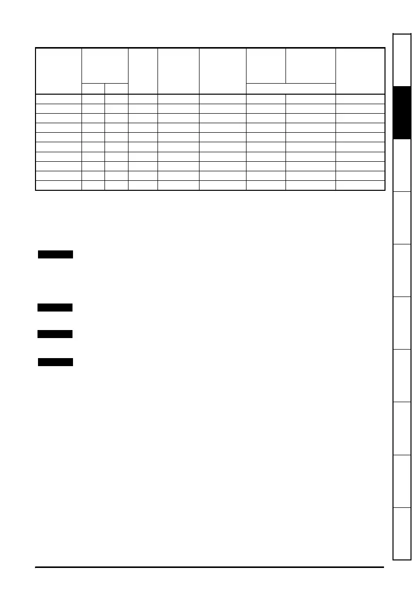 load input current values. See Commander SK Technical Data Guide for cable and fuse