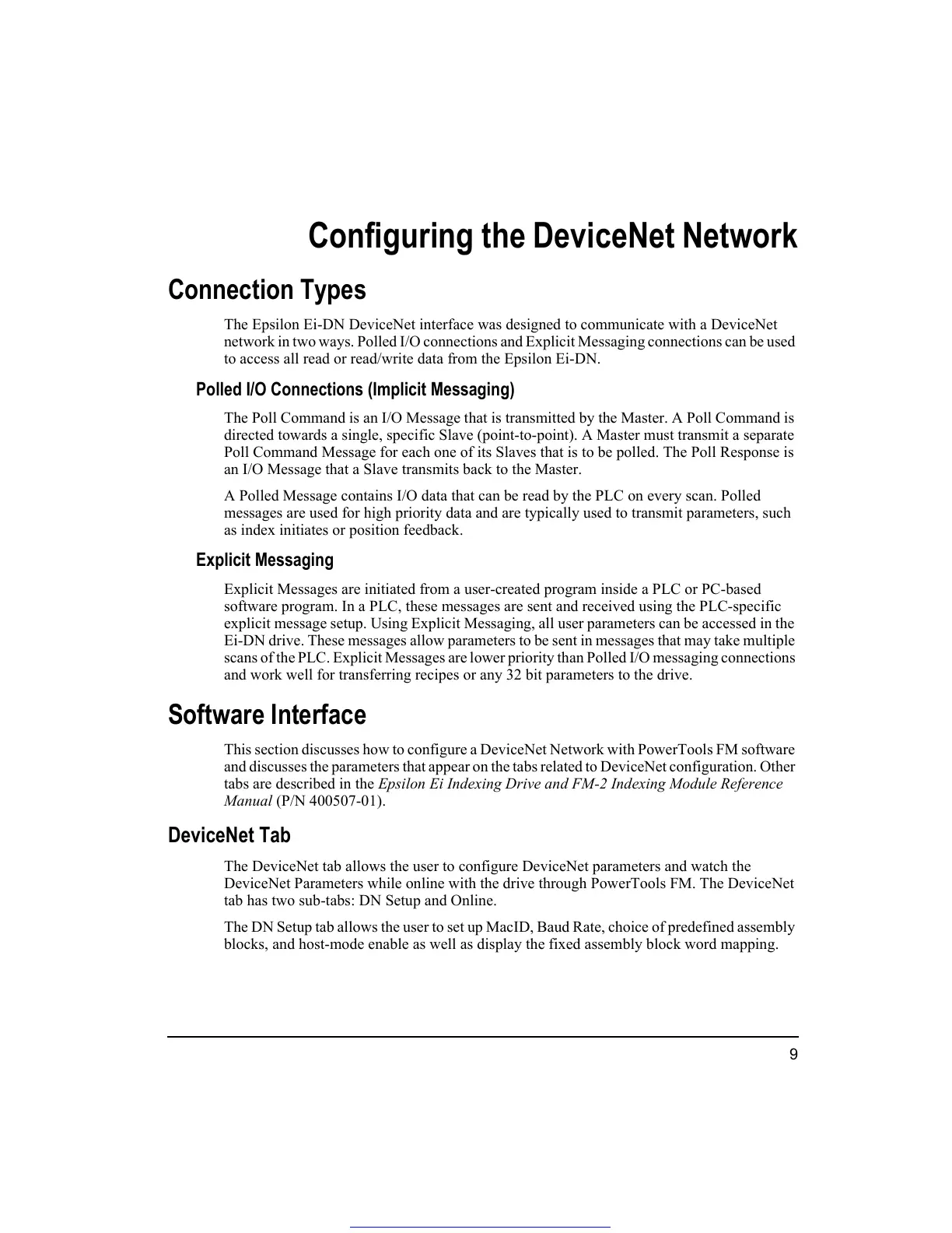 network in two ways. Polled I/O connections and Explicit Messaging connections can be used