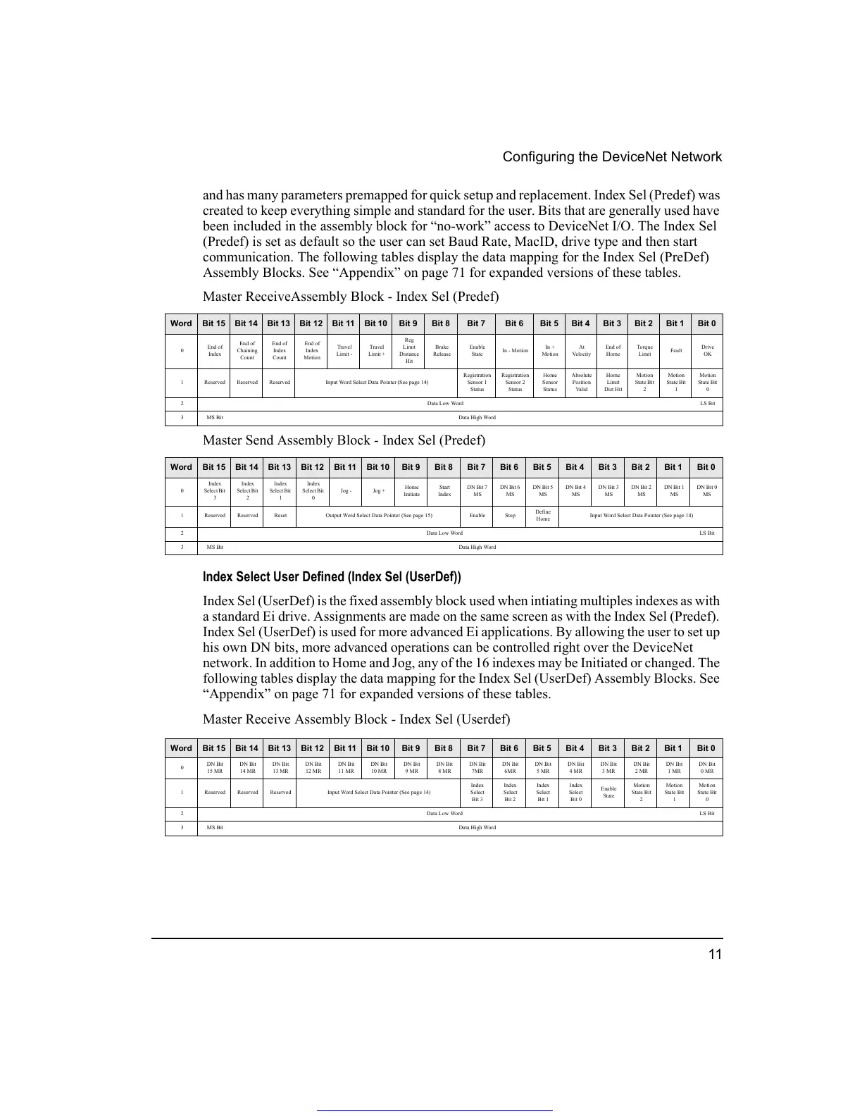 been included in the assembly block for “no-work” access to DeviceNet I/O. The Index Sel