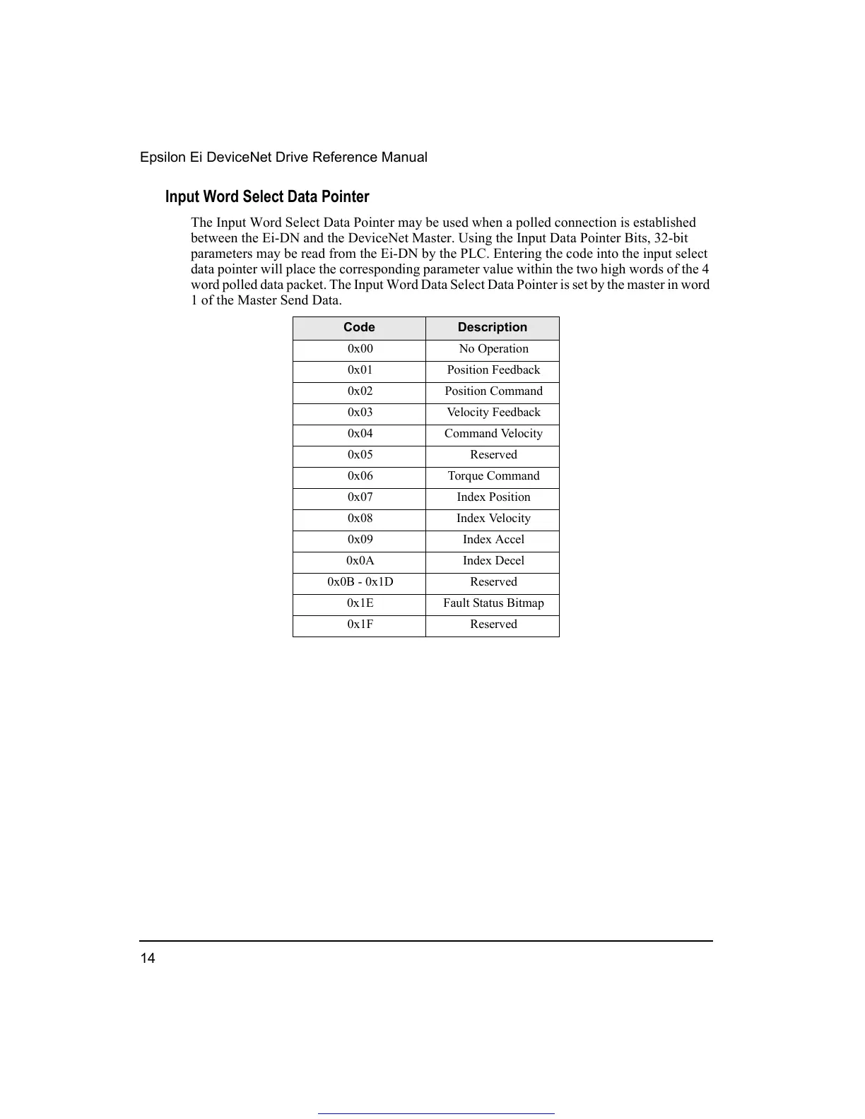 word polled data packet. The Input Word Data Select Data Pointer is set by the master in word