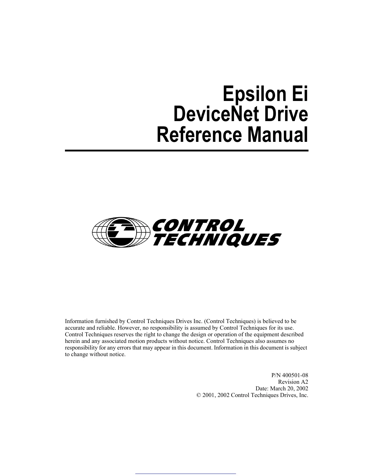 Control Techniques reserves the right to change the design or operation of the equipment described
