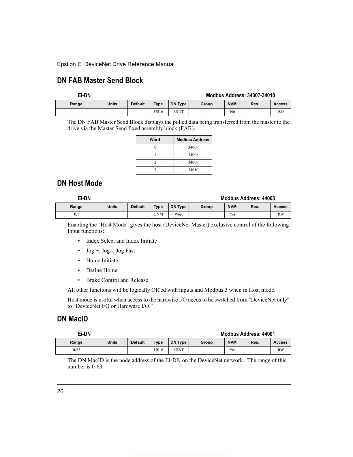 Enabling the "Host Mode" gives the host (DeviceNet Master) exclusive control of the following