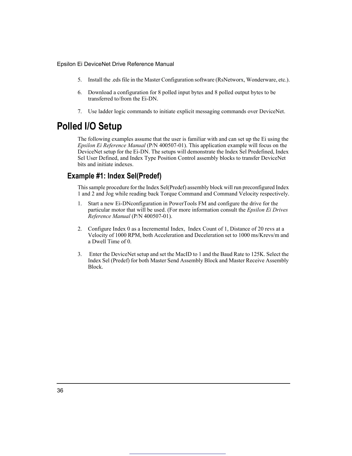 DeviceNet setup for the Ei-DN. The setups will demonstrate the Index Sel Predefined, Index