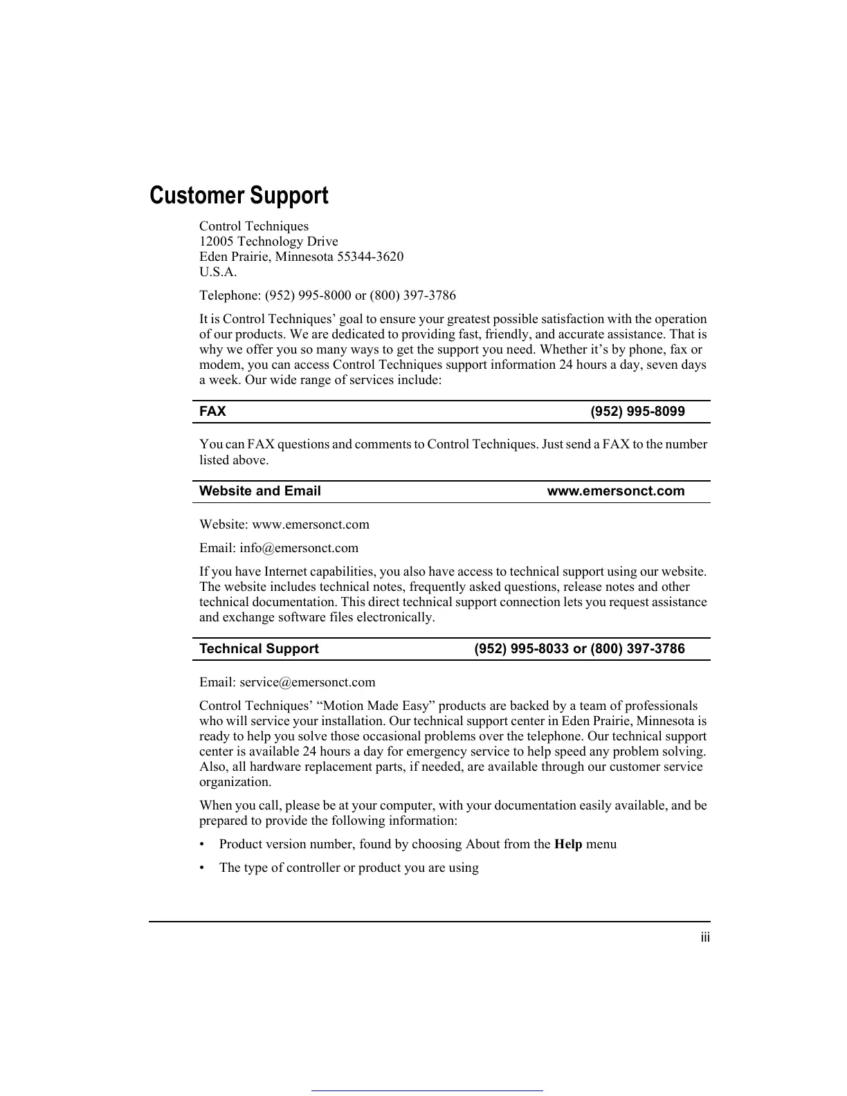 It is Control Techniques’ goal to ensure your greatest possible satisfaction with the operation