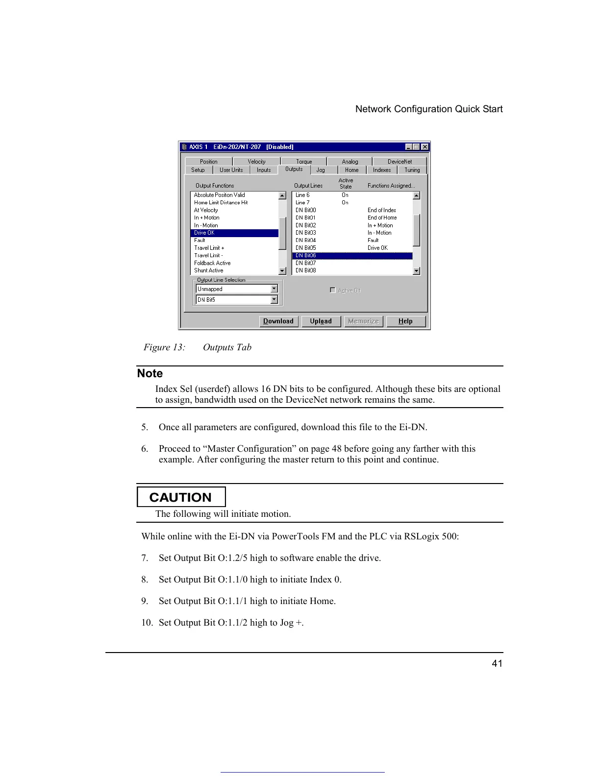 9. Set Output Bit O:1.1/1 high to initiate Home.