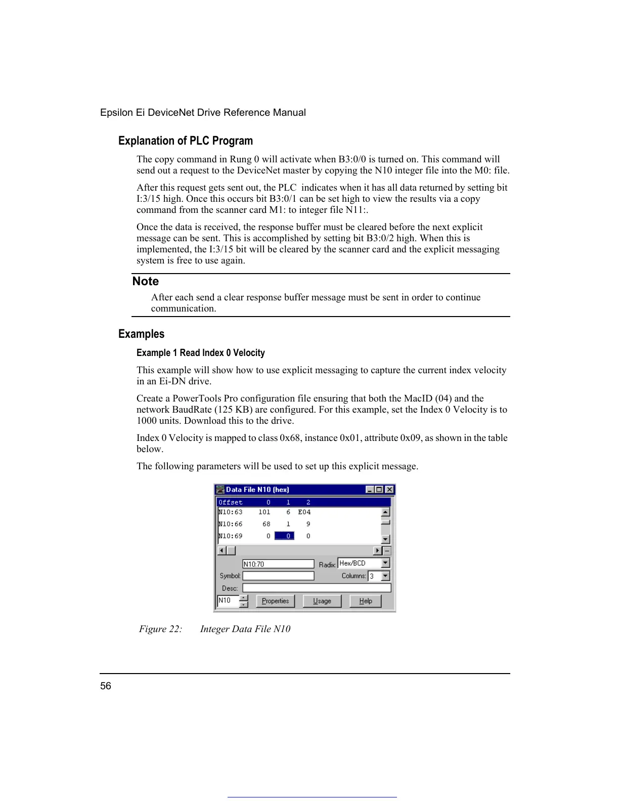 send out a request to the DeviceNet master by copying the N10 integer file into the M0: file.