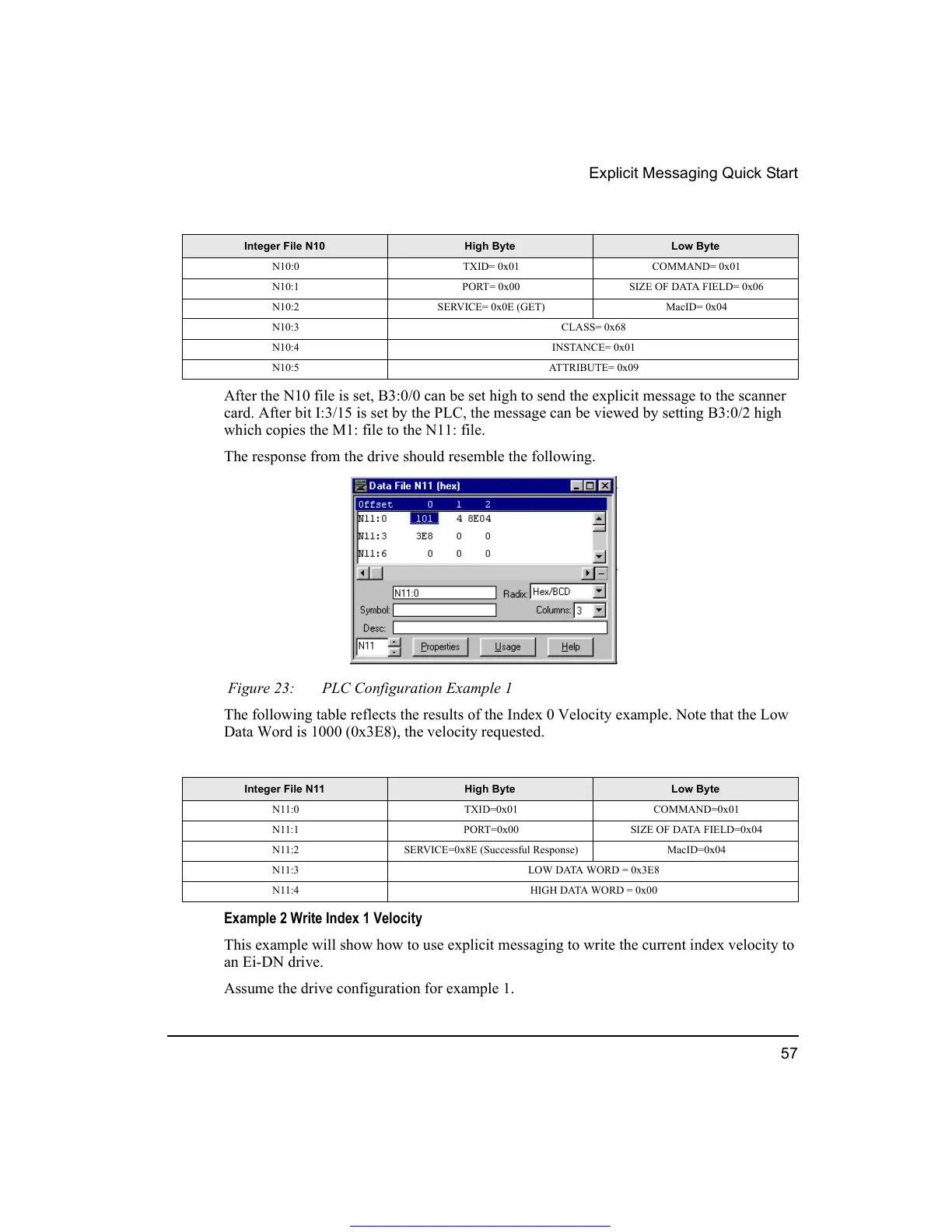 After the N10 file is set, B3:0/0 can be set high to send the explicit message to the scanner