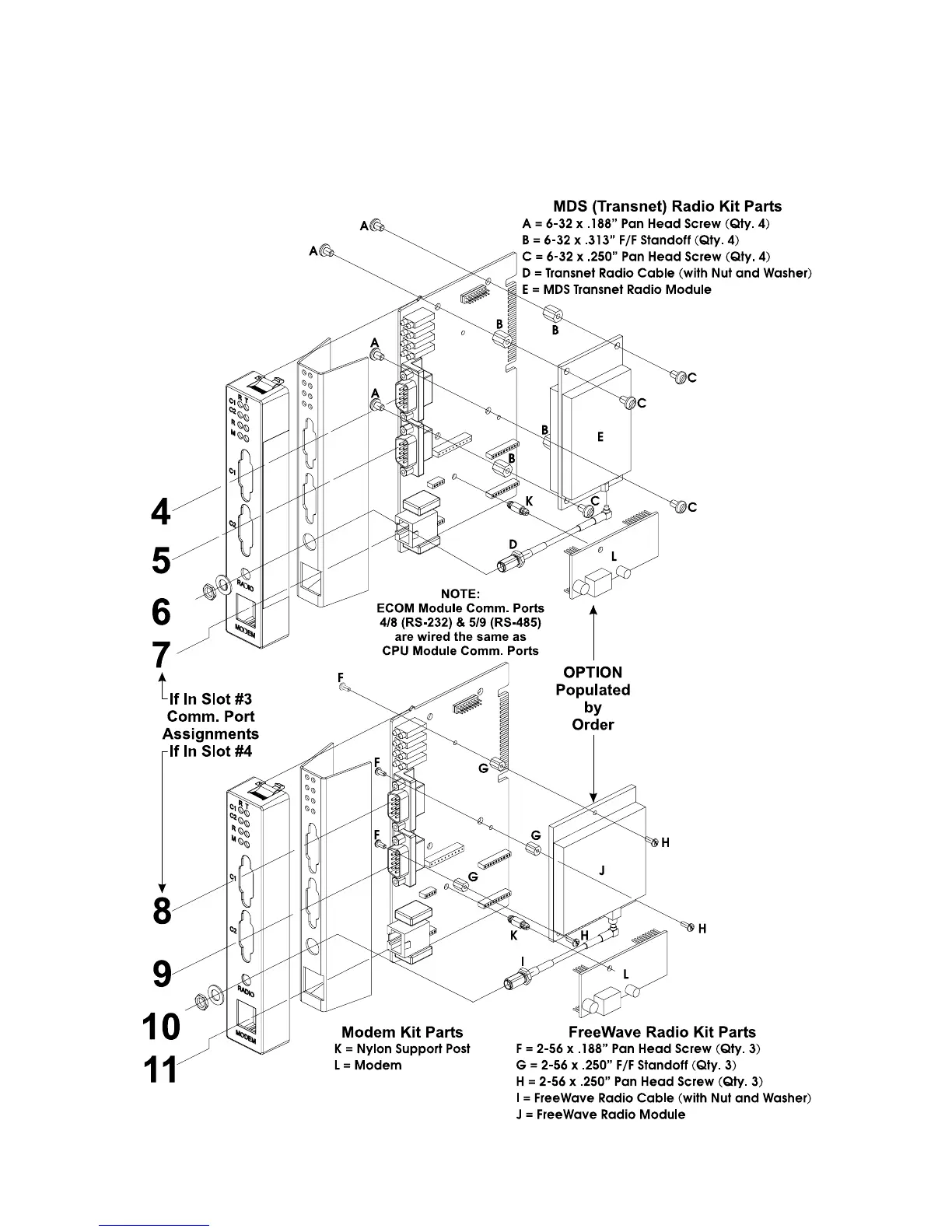 Radios are user installed onto the ECOM Module (see Figure C-4A) and their associated