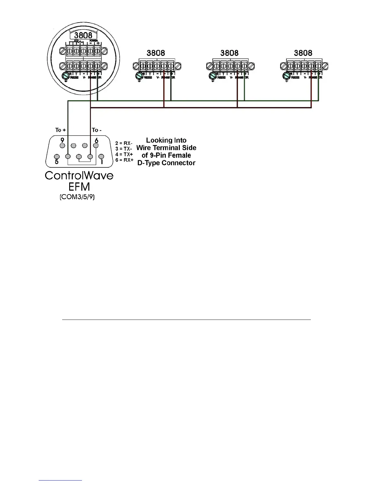 Figure C-12 - ControlWaveEFM to 3808s - RS-485 Network Diagram