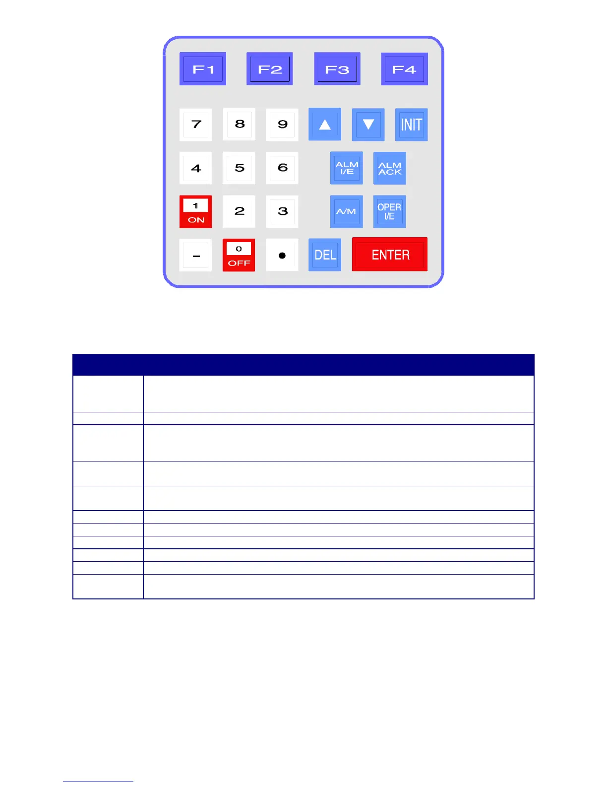 OPER I/E Toggle between manual inhibit (MI) and enable (ME) with this key.