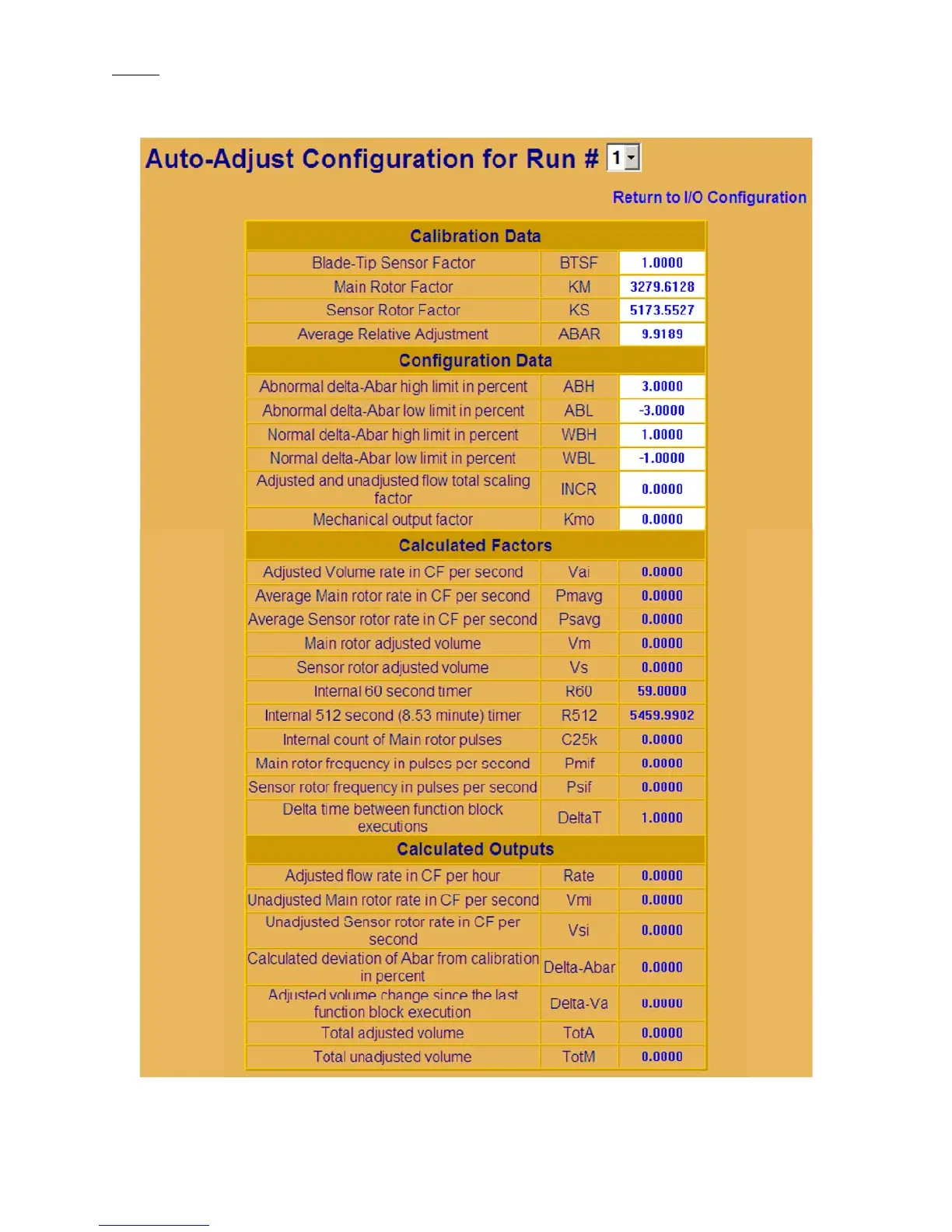 (Accessed from Meter Run I/O Configuration Web Page)