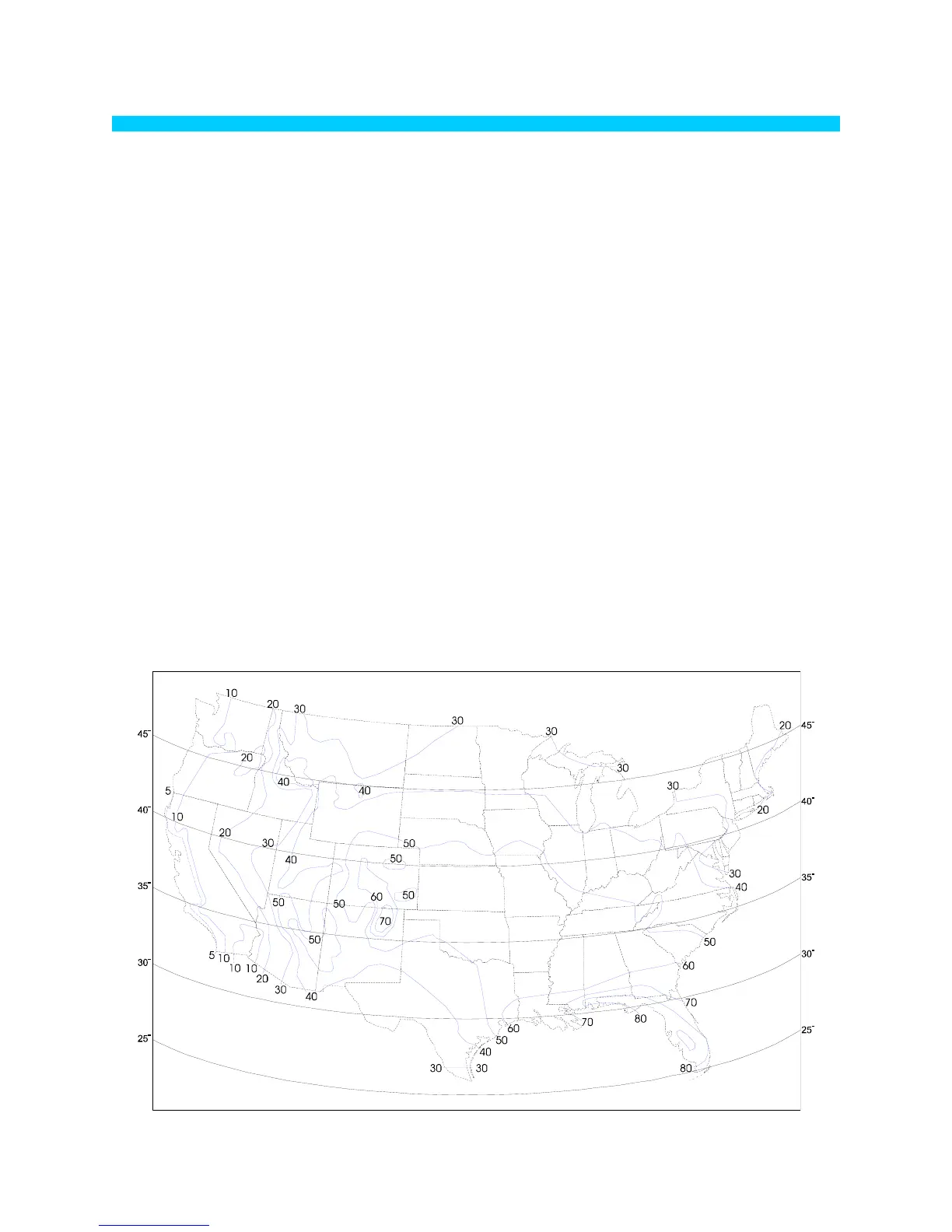 (Isokeraunic level) for the various regions within the continental U.S.A. This map is not