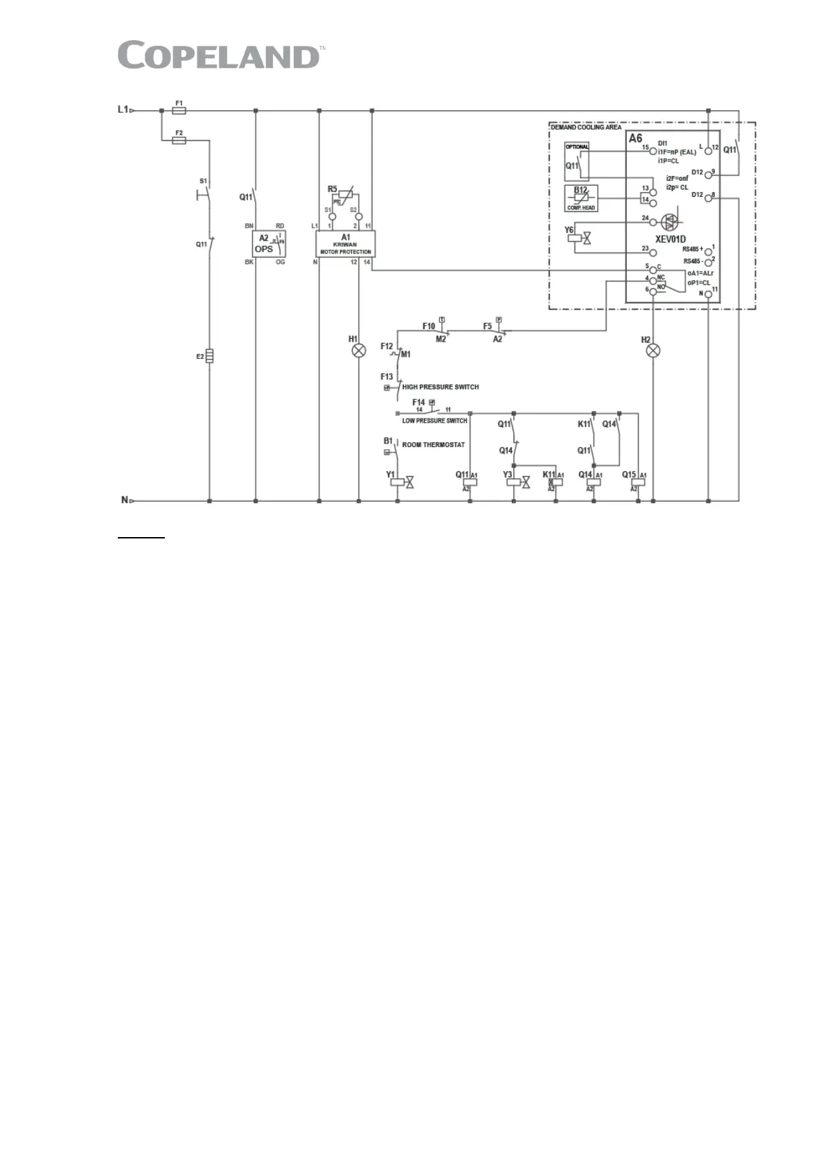 S1 ..... Auxiliary switch for crankcase heater R2 Y1 ...... Solenoid valve liquid line