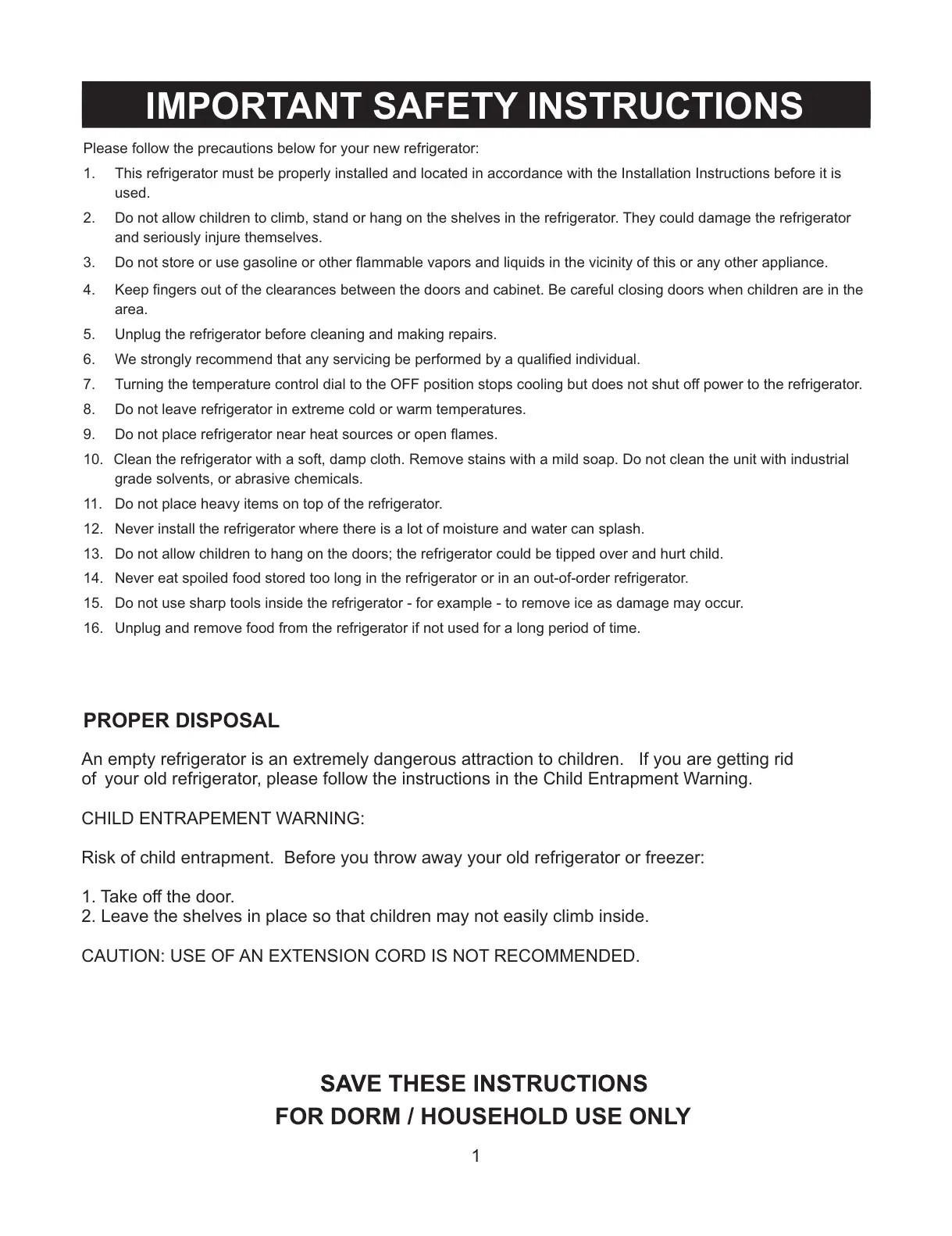 FOR DORM / HOUSEHOLD USE ONLY