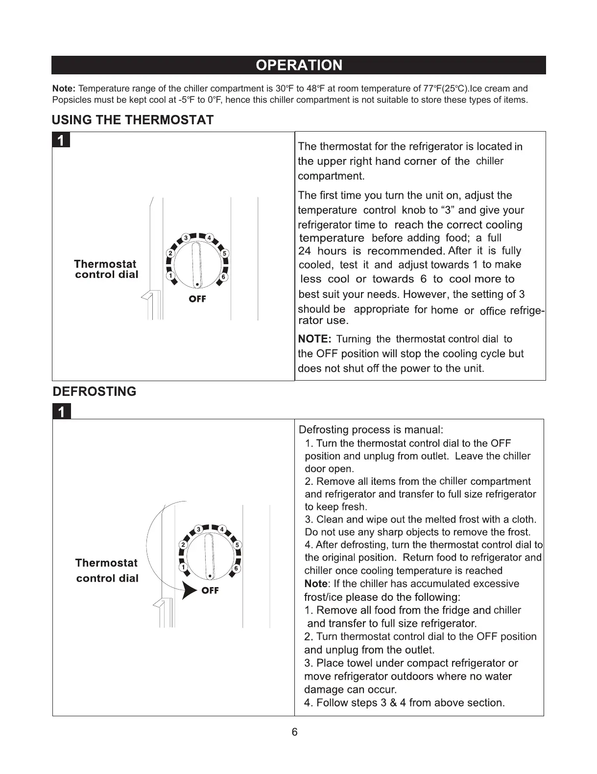 Emerson CR282P - Operation; Using the Thermostat; Manual Defrosting Process