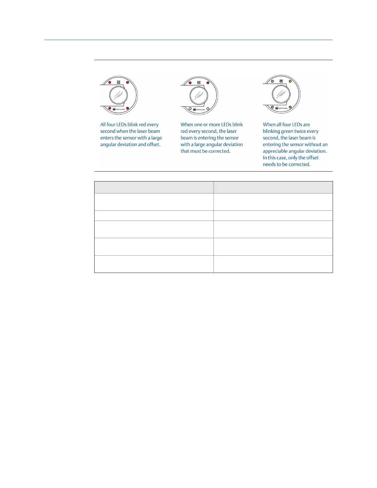 Laser beam striking the dust cap (laser off) All four LEDs blink red every second