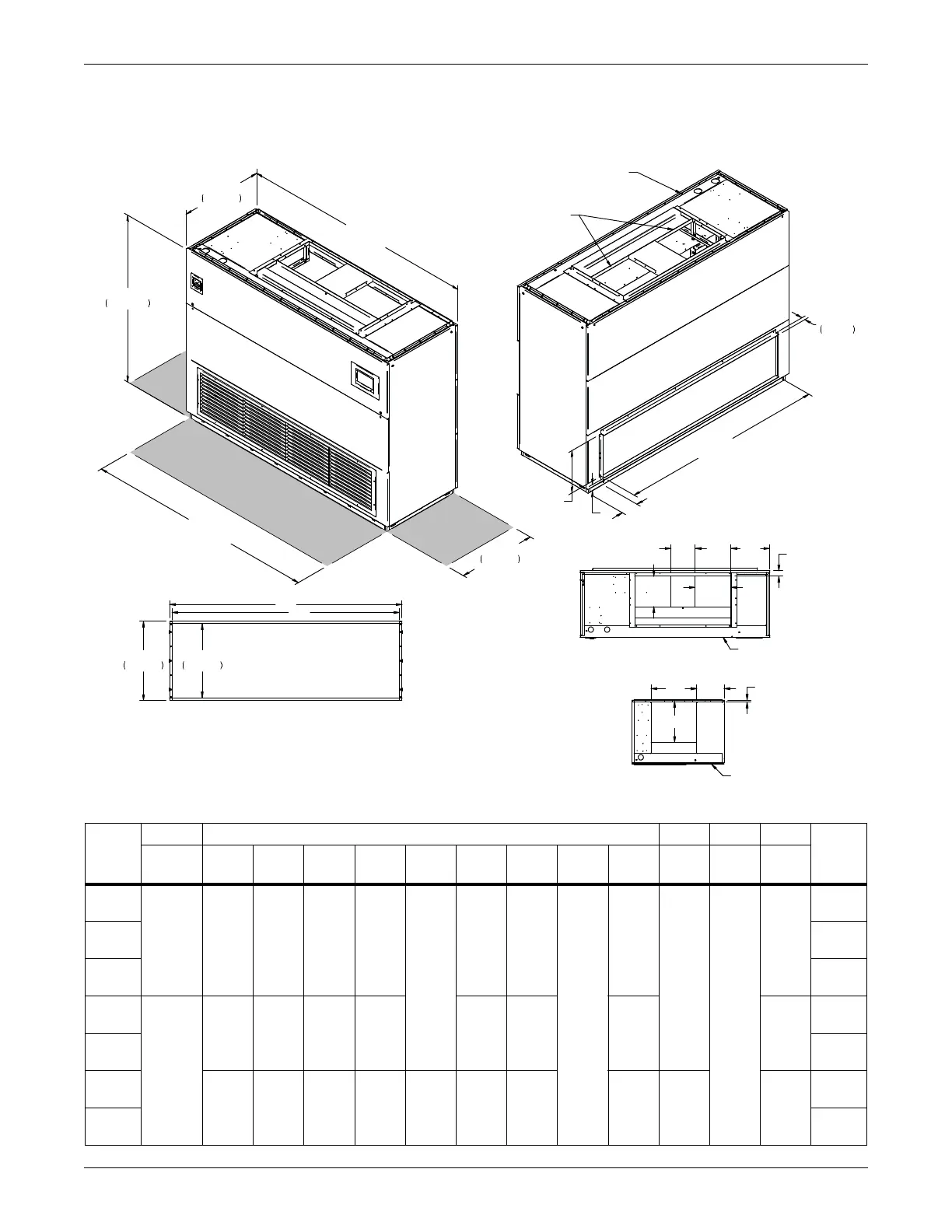 Figure 4-15 Cabinet and Floor-planning dimensions, upflow, CW026 – CW084 with forward-curved blowers
