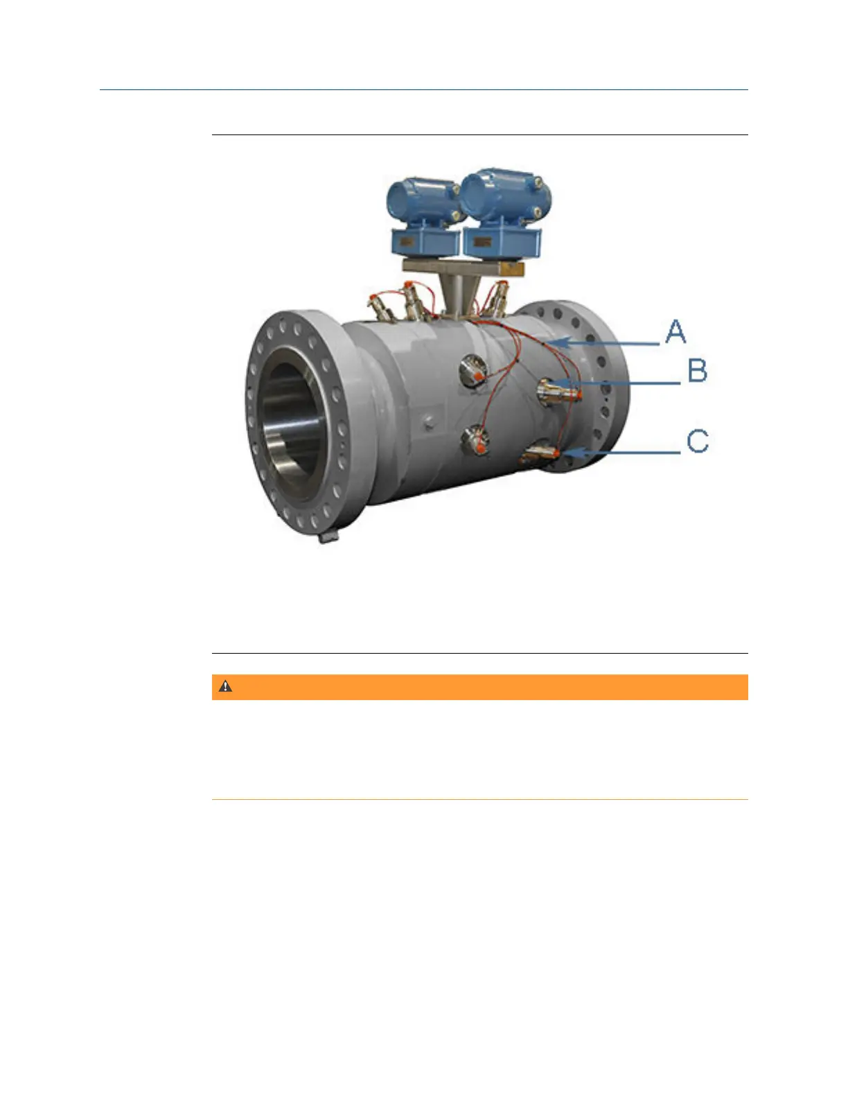 Daniel 3410 Series Ultrasonic Gas Flow Meter transducer cables and portsFigure 3-7: