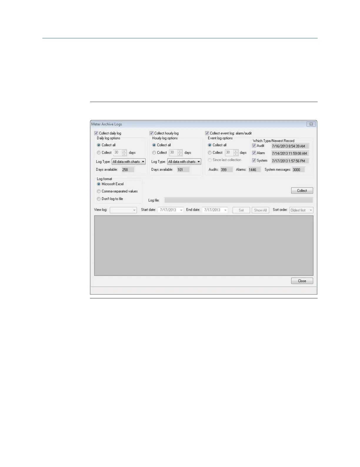 the desired log options and click Collect. Daniel MeterLink opens a Save As dialog box to