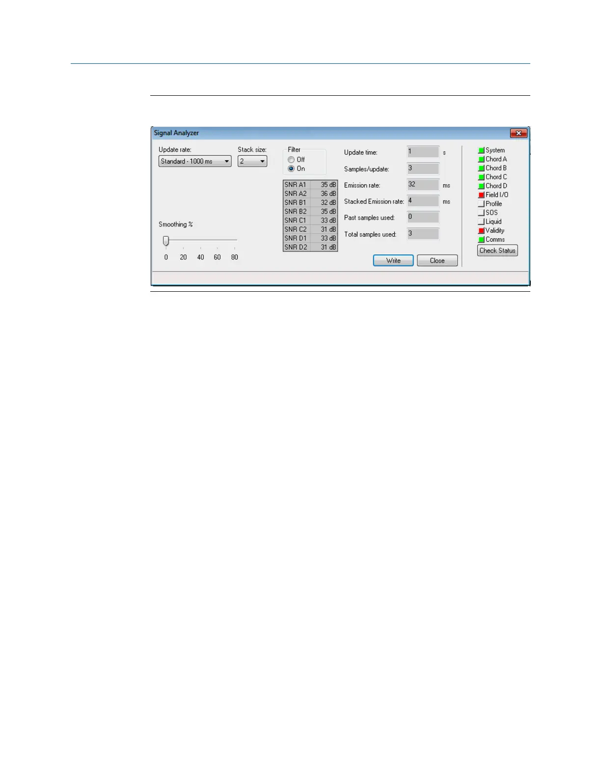 Signal Analyzer - update rate, stack size, filter and emission rateFigure 4-3: