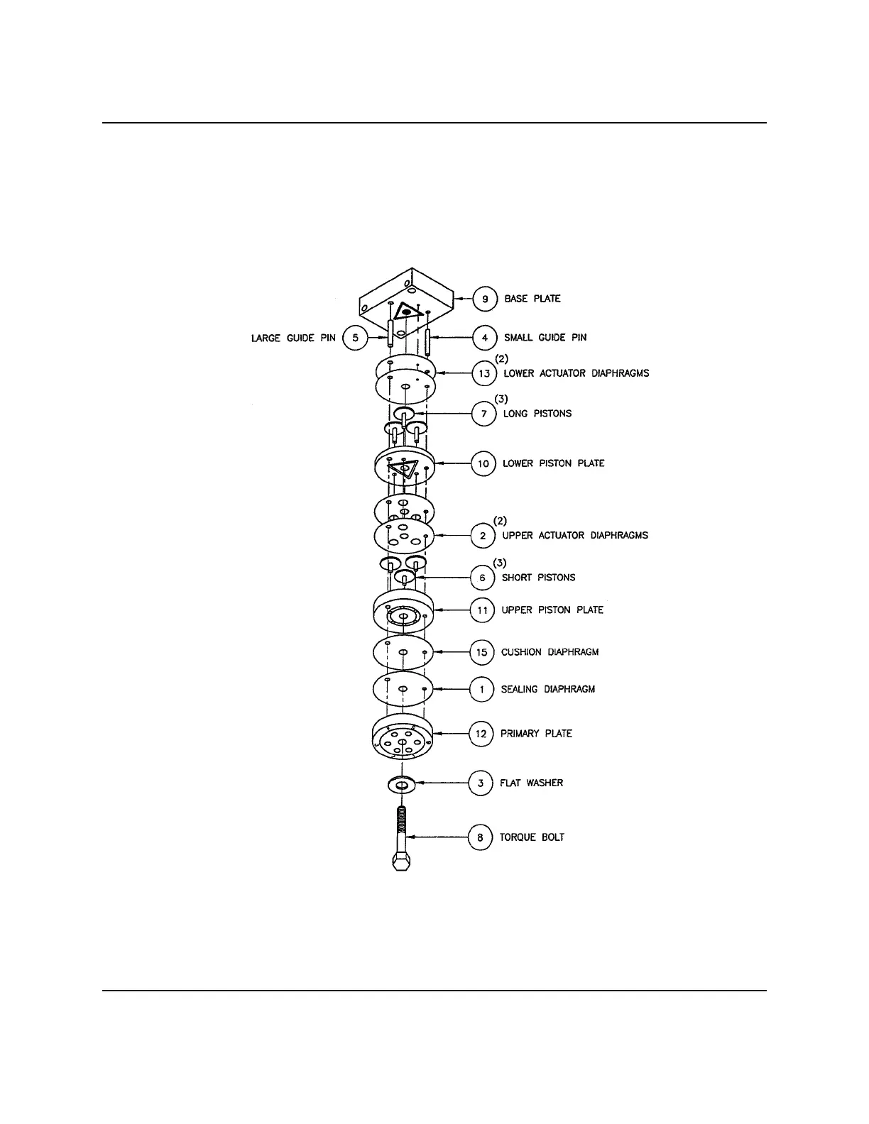 A chromatograph valve is shown in Figure 2-2 in exploded view. Its pistons are pneumatically