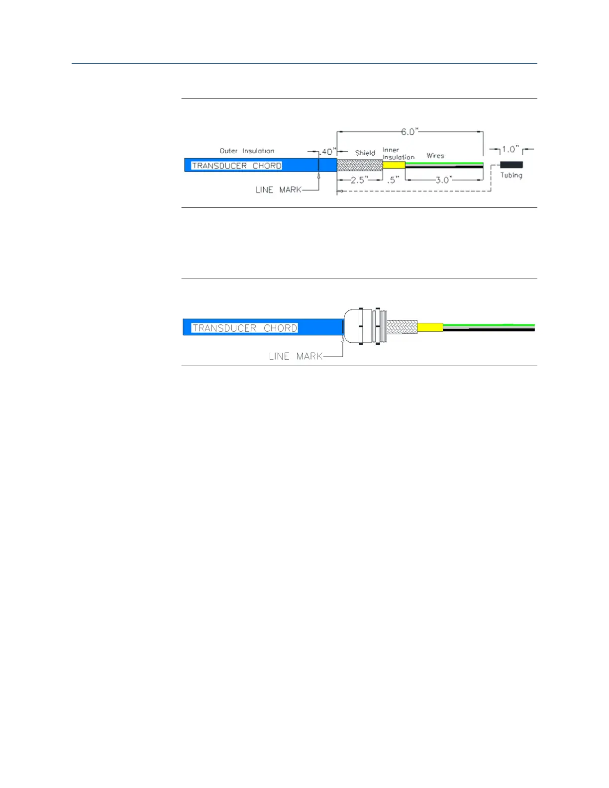 13. Insert and secure transducer cables through cable glands verify Line Mark is as