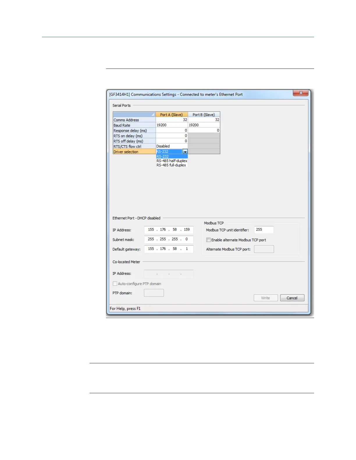 2. Use the Driver selection pull-down menu if communication settings require RS-485
