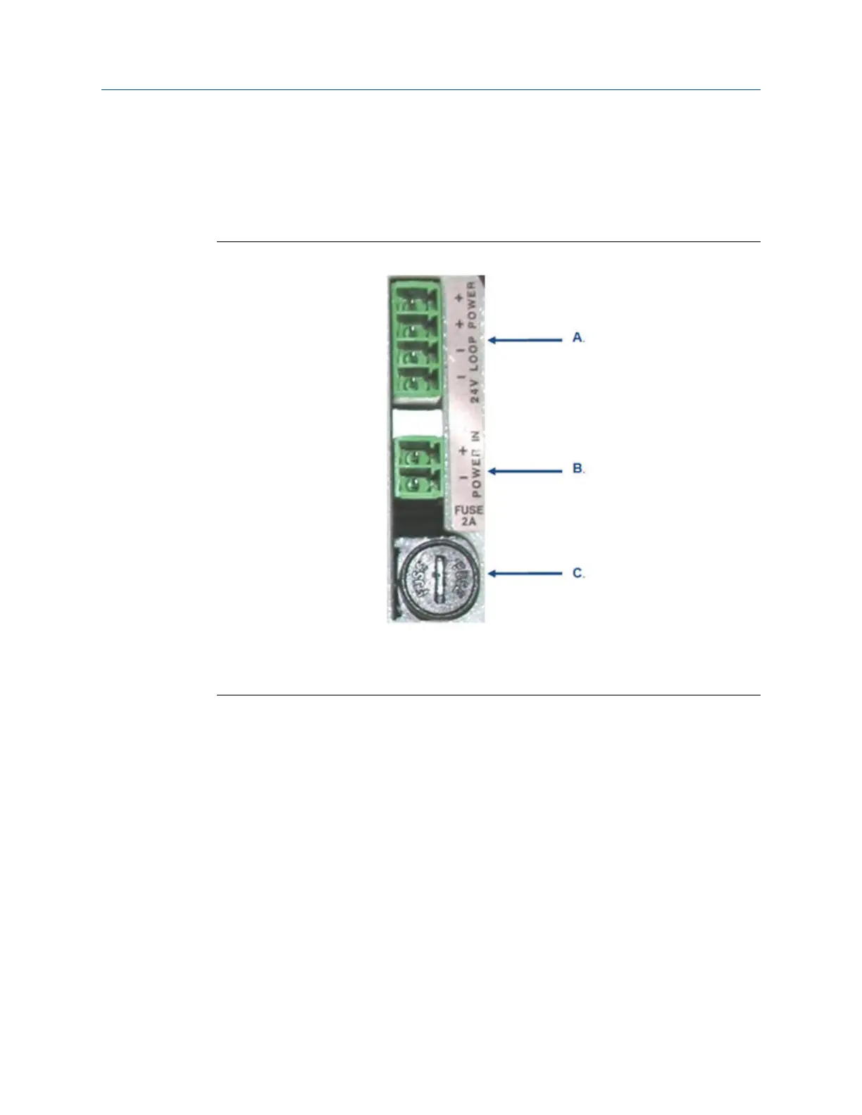 Amp fuse and a 24V loop power connection for ultrasonic meter analog outputs,