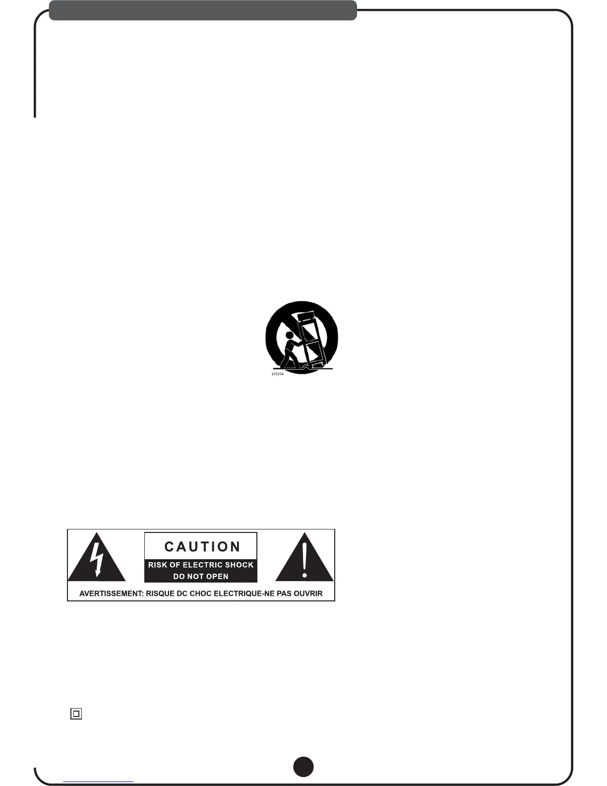 - Warning: To reduce the risk of electric shock, do not remove cover (or back) as there are no user-serviceable parts