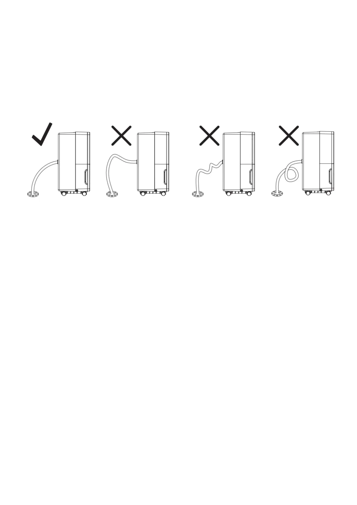 Placing the dehumidifier on an uneven surface or improper hose installation may result in water filling up the bucket and