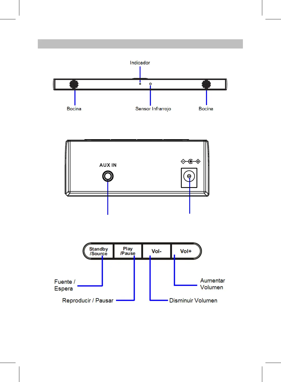 Conector de Entrada Auxiliar Conector de Alimentación