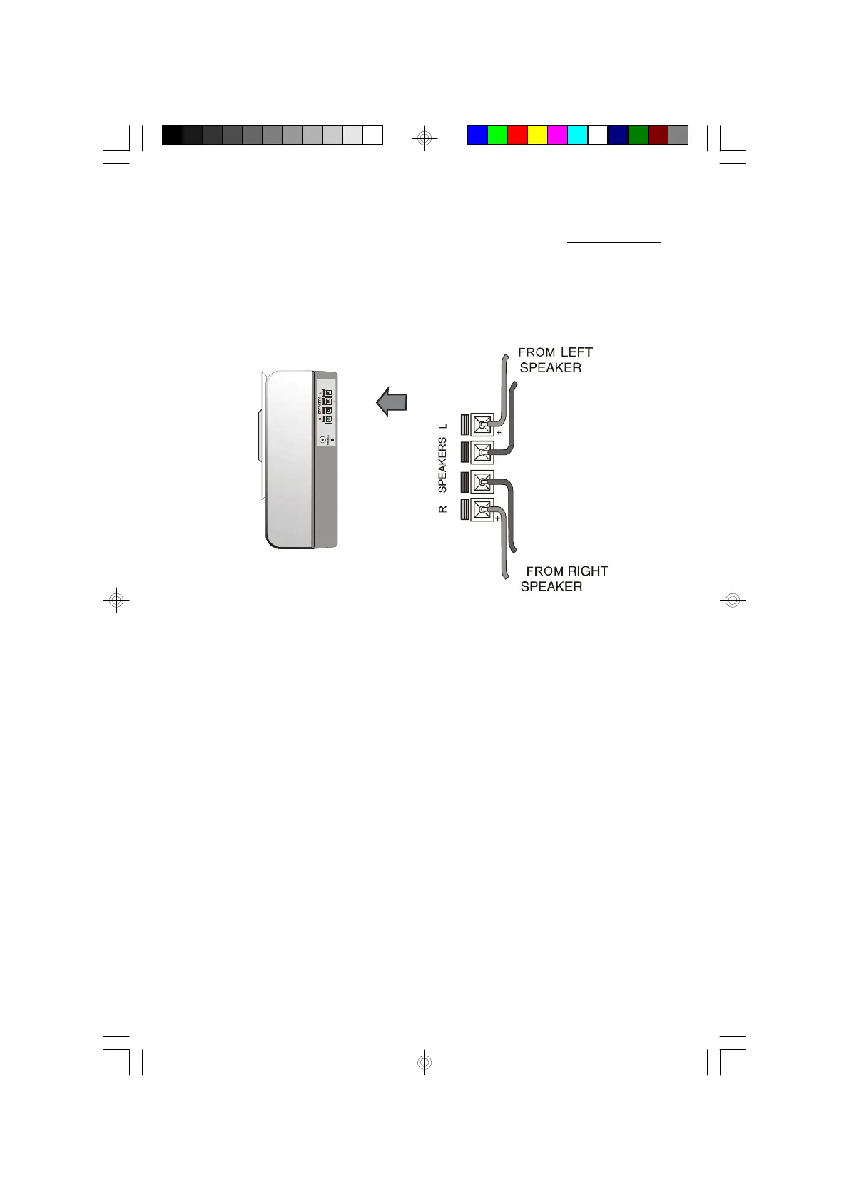 Connect the speakers to the Red (+) and Black (–) terminals on right side panel of