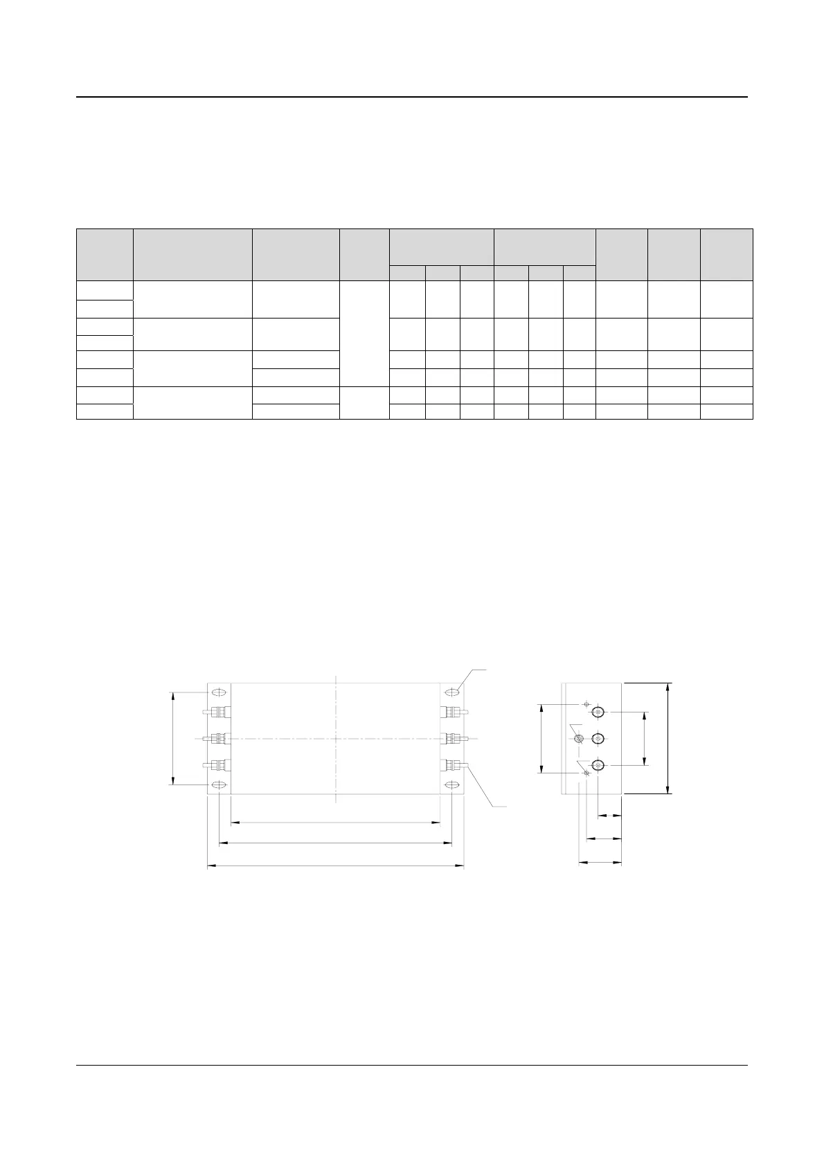 The sizes of EMI filter are shown in Fig. A-6. See Table A-6 for the details.