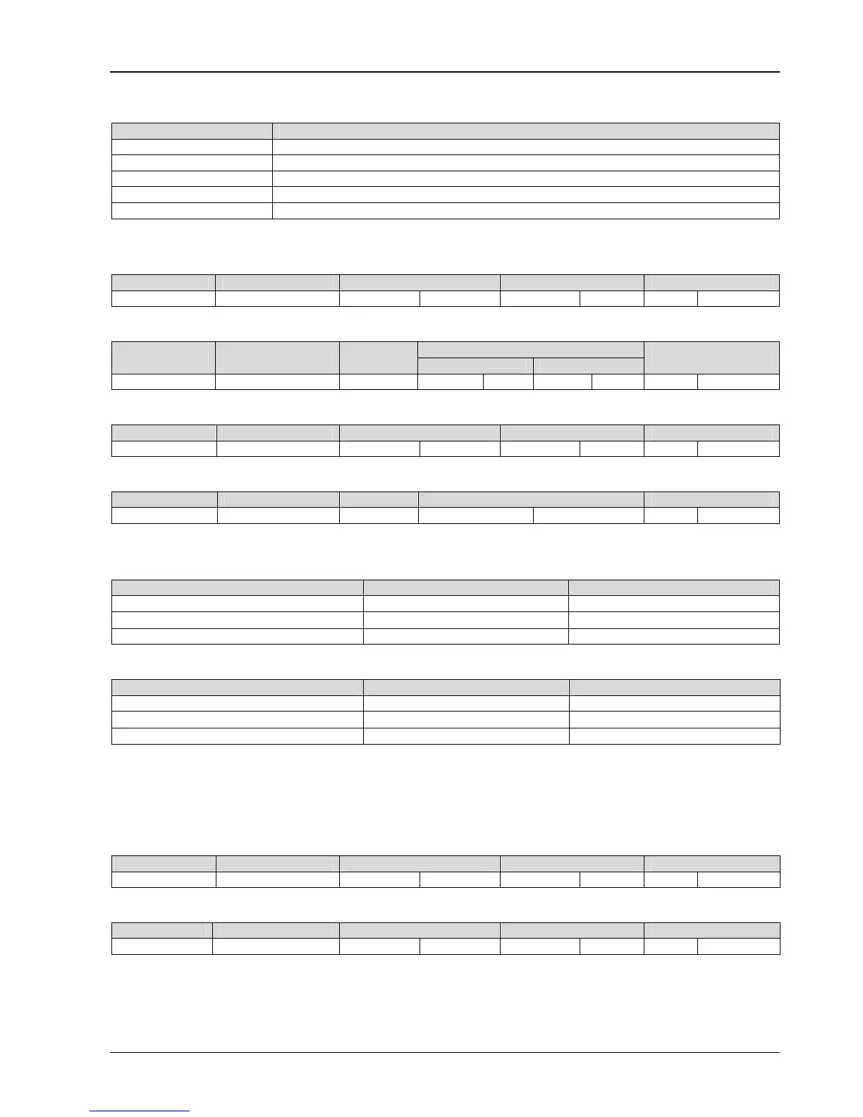 Address Function parameter Register address Register content Check sum
