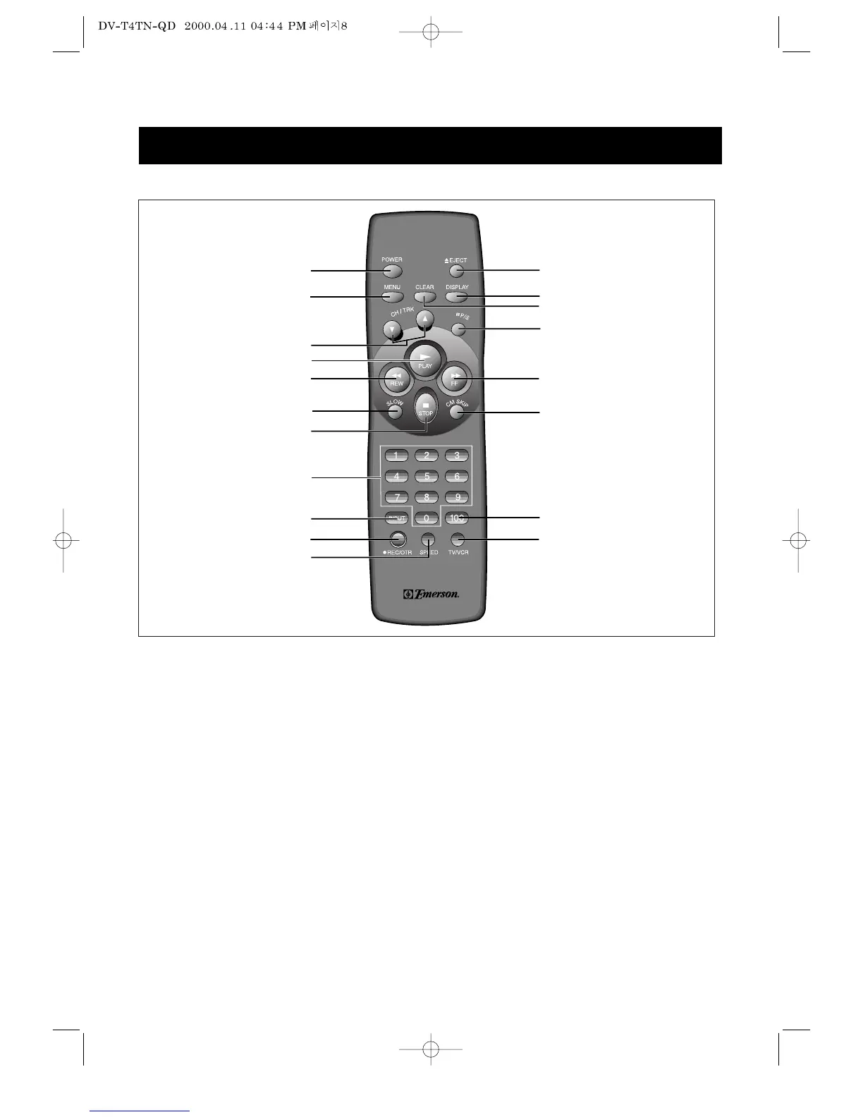 Emerson EV477 - 1 Front Av Jack; Remote Control; Power Key; VIDEO in Jack