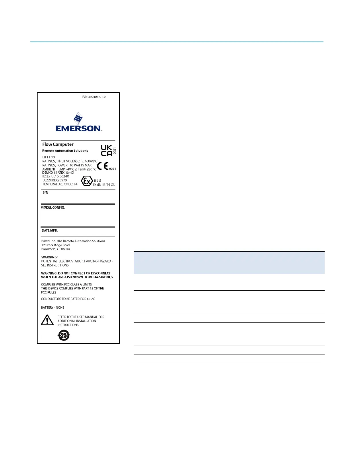 UL Safety Instructions for Emerson FB1100 Flow Computers