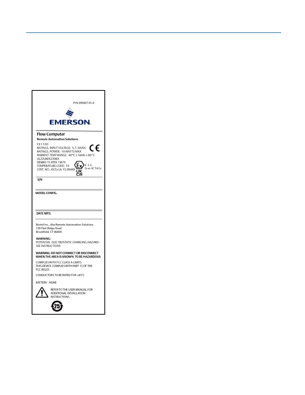 please refer to the Emerson FB1100 Flow Computer Safe Use Instructions