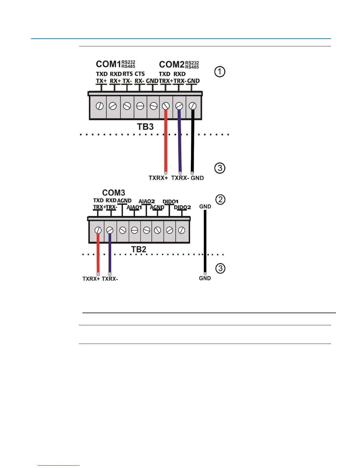 COM3 does not have its own GND terminal. Use either GND terminal on the COM1 terminal block.