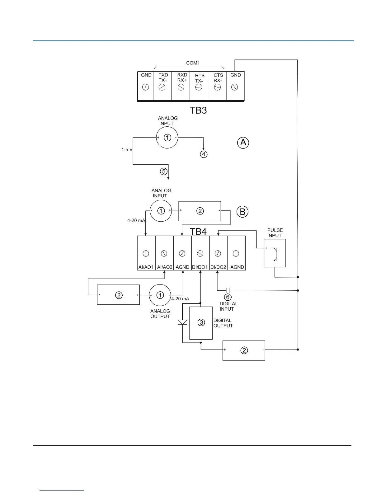 When wiring a 4-20 mA Analog Input (AI), use configuration at left