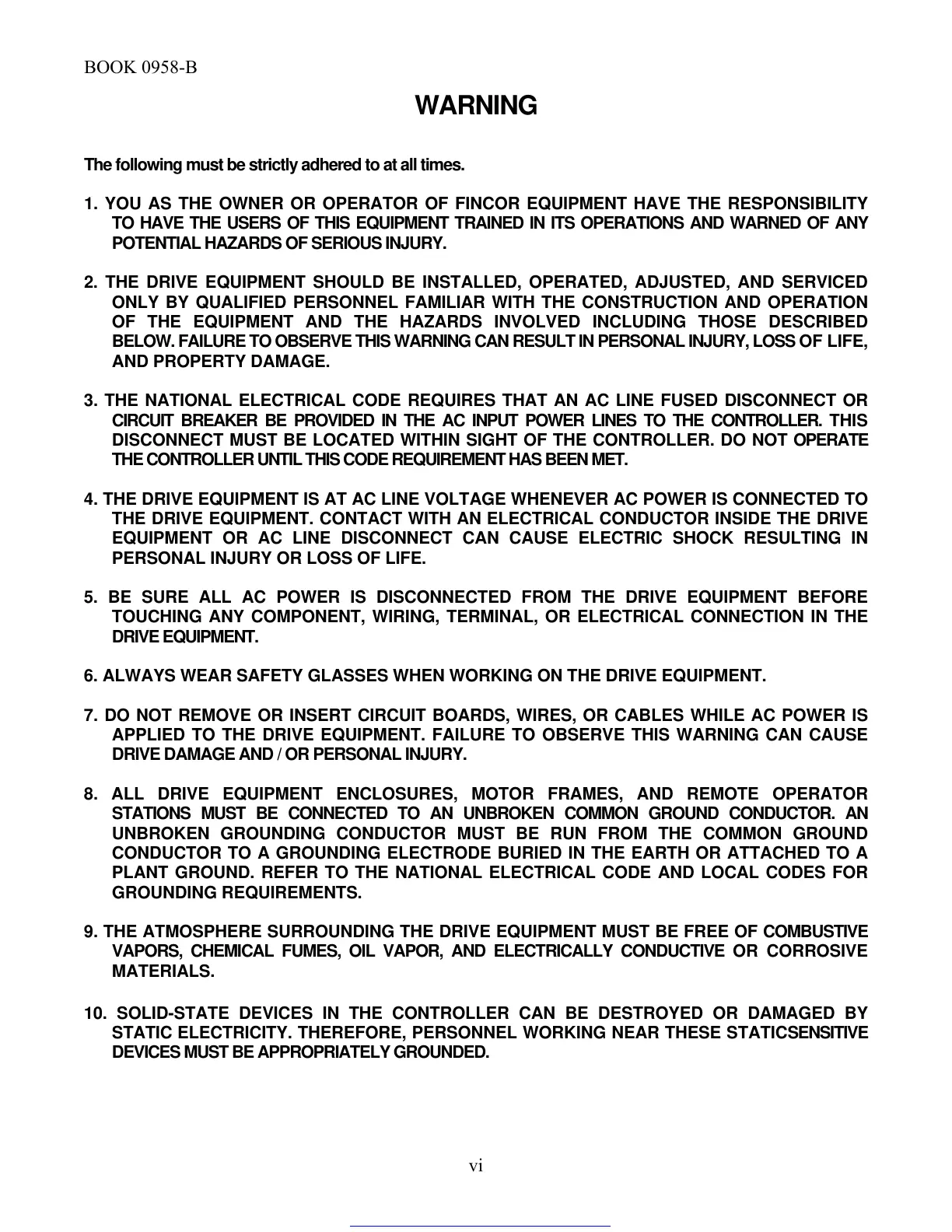 APPLIED TO THE DRIVE EQUIPMENT. FAILURE TO OBSERVE THIS WARNING CAN CAUSE